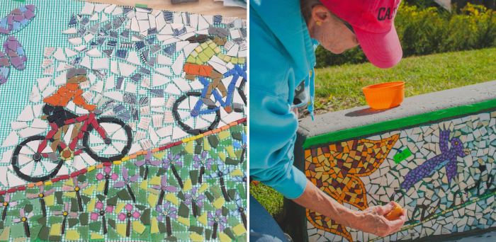 You can admire a collective mosaic at the Place publique, created during workshops for citizens and visitors under the expert guidance of mosaic artist Isabelle Marissal. This major project, which spanned two years, is documented on mobile structures located near the decorated murals.